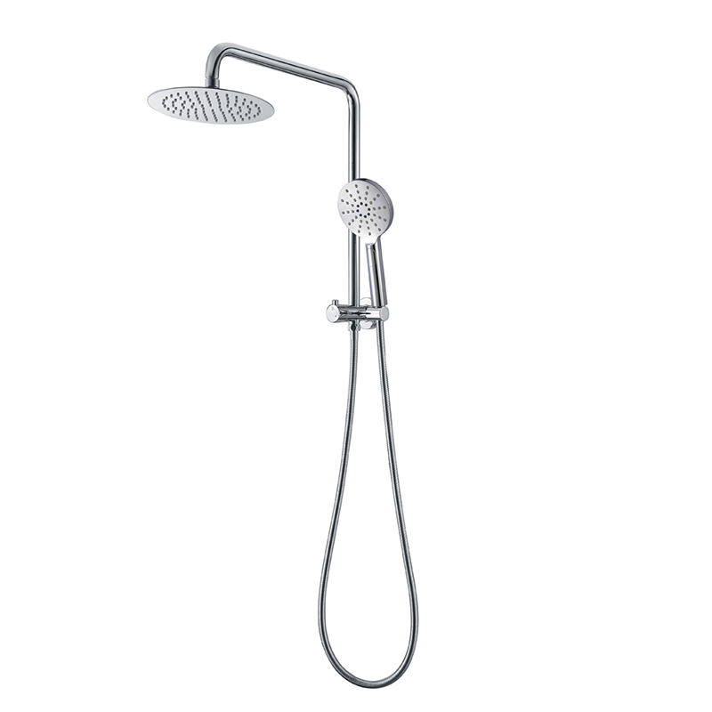Chrome Round 200mm Overhead Rain Shower 3 Spray Function ABS Hand Shower Built in Divertor Half Rail Design Premium Brass Construction