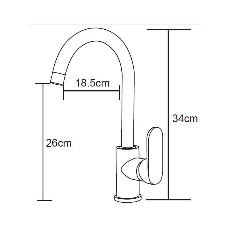 Chrome Gooseneck Sink Mixer Premium Brass Construction Round Solid Edge Handle Swivel Outlet