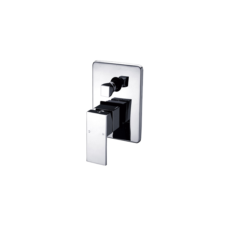 Chrome Square Shower Divertor Mixer Square Solid Handle Square Back Plate Premium Brass Construction