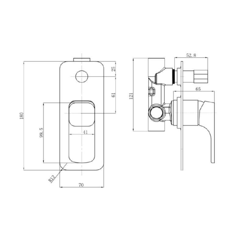 Chrome Shower Divertor Mixer Square Tapered Solid Handle Rectangular Back Plate Premium Brass Construction