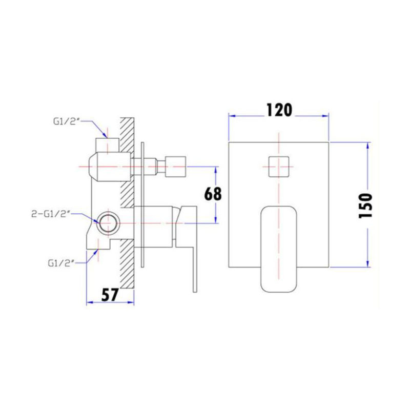 Chrome Square Wall Mixer Square Tapered Solid Handle Premium Brass Construction Splash Reducing Neoperl Aerator