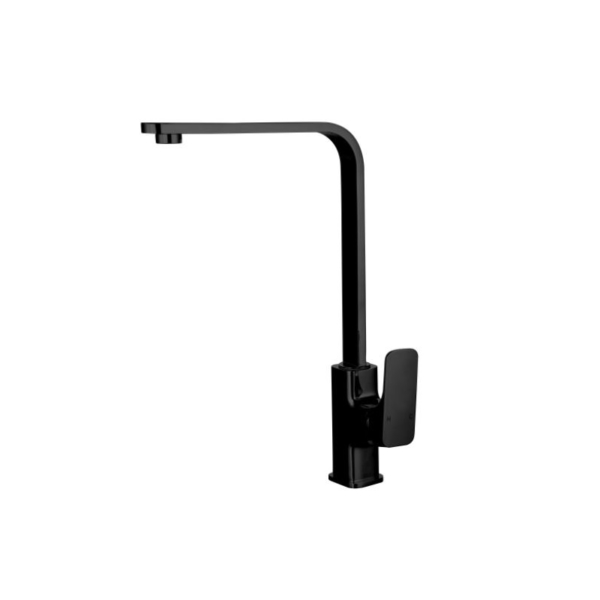 Black Squareline Gooseneck Sink Mixer Premium Brass Construction Swivel Outlet Splash Reducing Neoperl Aerator Clean Smooth Design