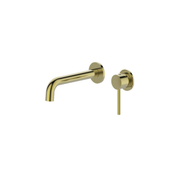 Brushed Gold Wall Mixer with Spout Basin or Bath Application 180mm Bath Spout Solid Brass Construction Ergonomically Designed Handle