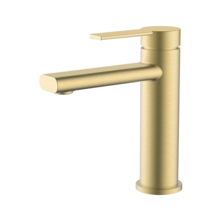 Brushed Gold Basin Mixer Premium Brass Construction Stylish Smooth Solid Handle Neoperl Aerator