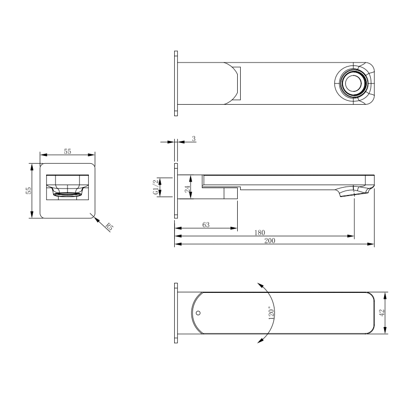Chrome Finish 200mm Length Swivel Spout Soft Square Back Plate Bath Application Premium Brass Construction