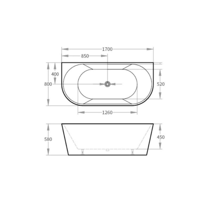 Freestanding Back To Wall White Bath Sanitary Grade Acrylic Centre Waste Position Built in Base Frame Adjustable Feet Waste Not Included 1700mm (L) x 800mm (W) x 580 mm (H)