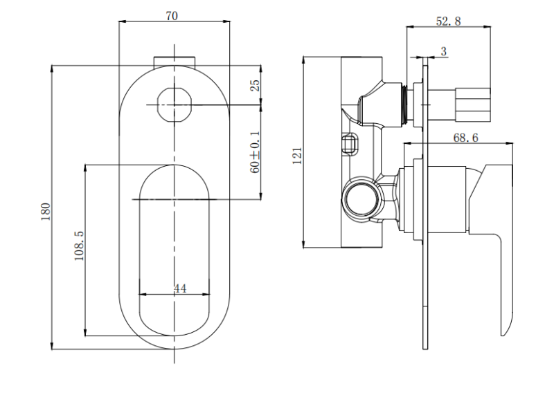 Chrome Shower Divertor Mixer Premium Brass Construction Genuine German 35mm Fluhs Cartridge