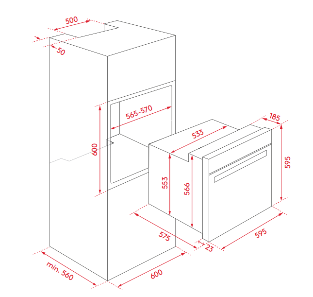 IO60XL5T 5 Functions 85L Capacity Black Glass Door With Stainless Steel Trim Push/Pull Knobs Programmable Clock/Timer Cavity Cooling System Triple Layered Cool Touch Glass Door Chrome Side Racks 3 Interior Lights