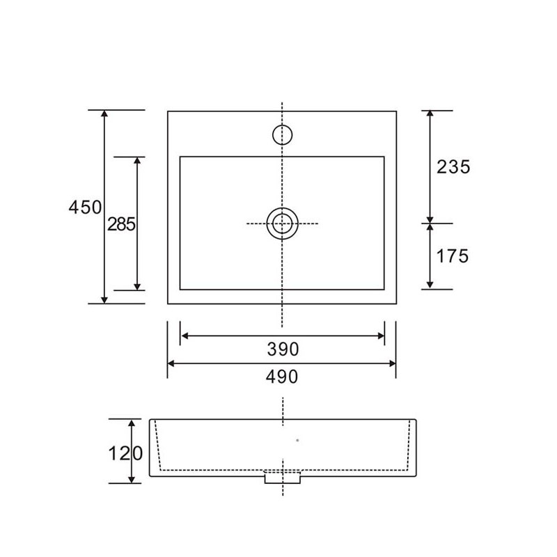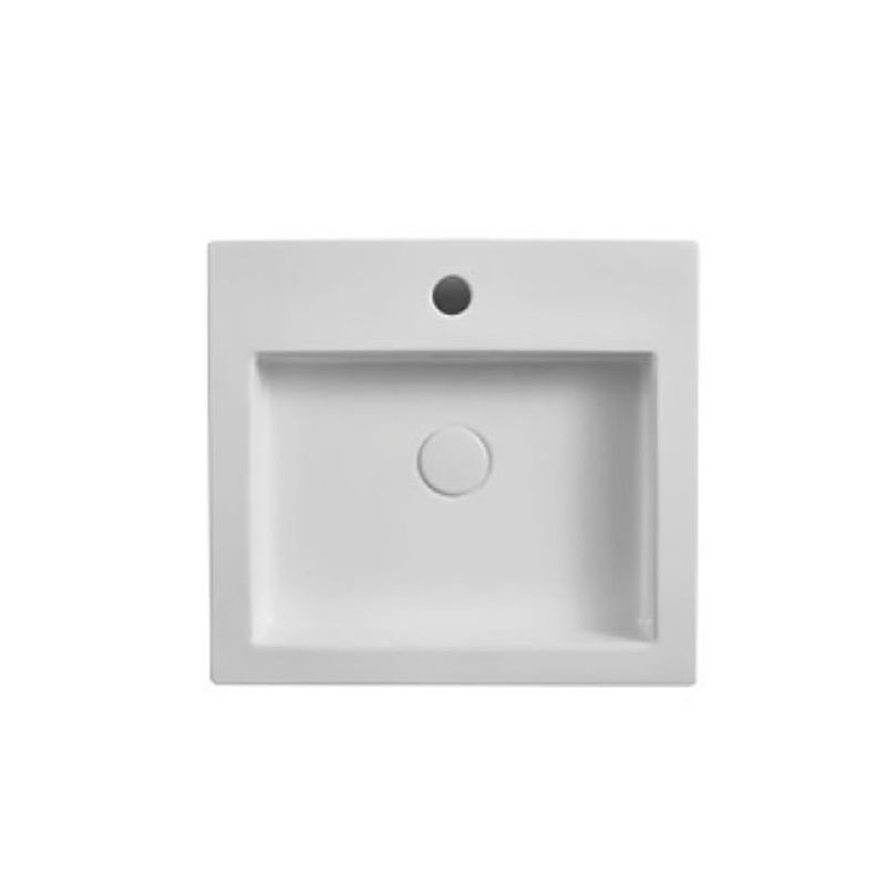 Above Counter White Ceramic Basin Rectangular Shaped 1 Tap hole Tap Landing Overflow Tapware Not Included Plug and Waste Not Included 490mm x 450mm x 130 (D) mm