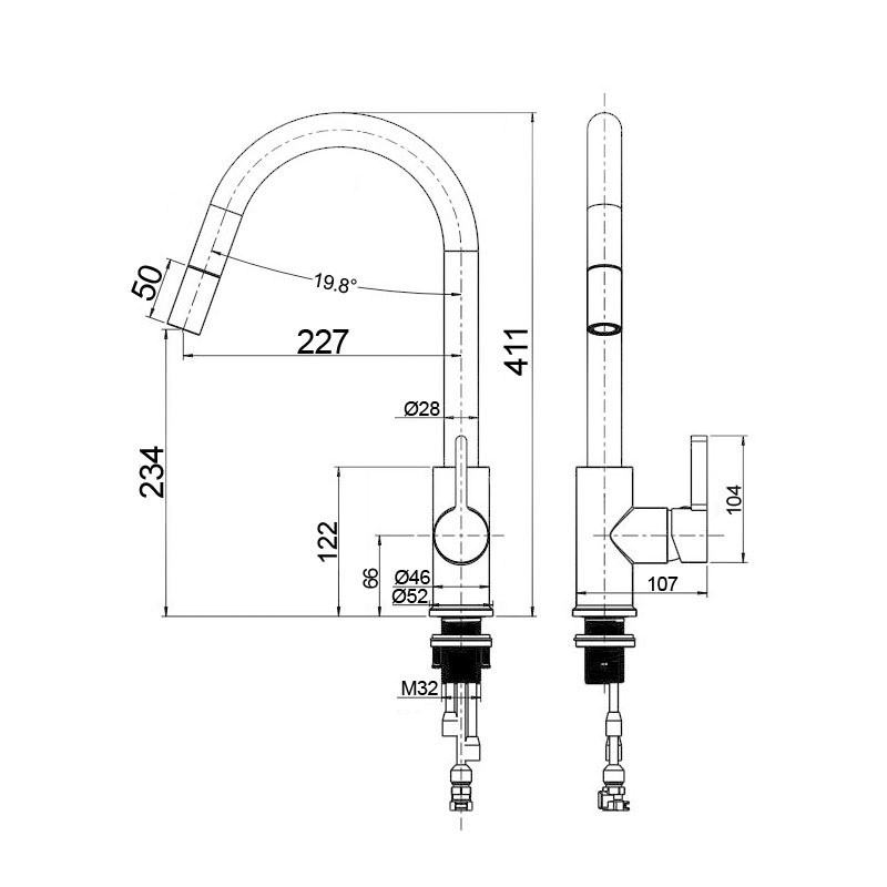 Brushed Gold Pull Out Gooseneck Kitchen Mixer Swivel Outlet Lever handle Premium Brass Construction