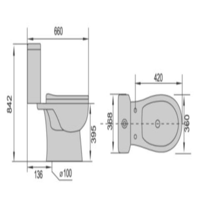 Close Coupled Toilet Suite Round Chrome Dual Flush Buttons Soft Close Seat Strap: 140mm Only Size: 660 x 368 x 842mm